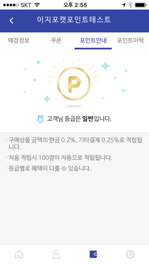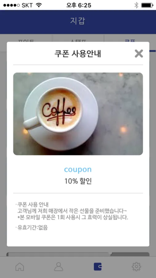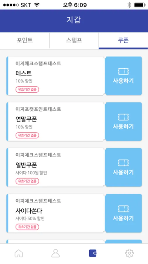 가맹점별 포인트와 스탬프, 쿠폰이 각각 분류되어 한눈에 보기 편합니다.