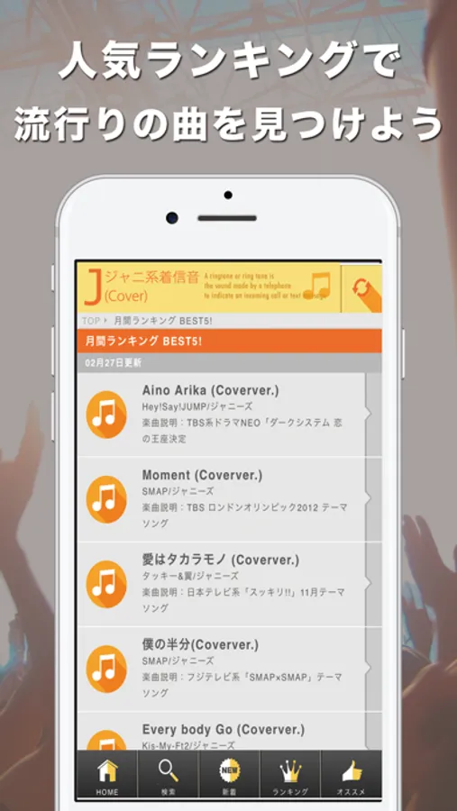 BabyBandが歌う、ジャニ系の着信音(Cover)を簡単に検索・ダウンロードできるアプリです。