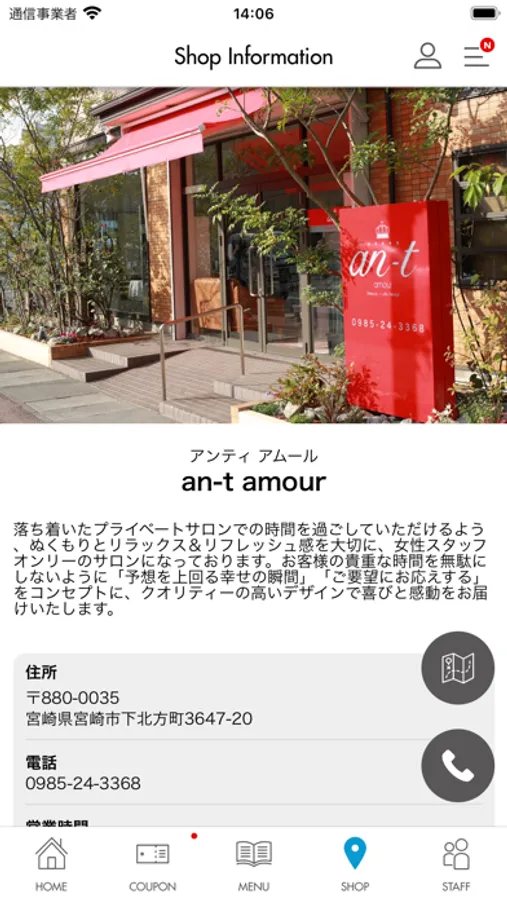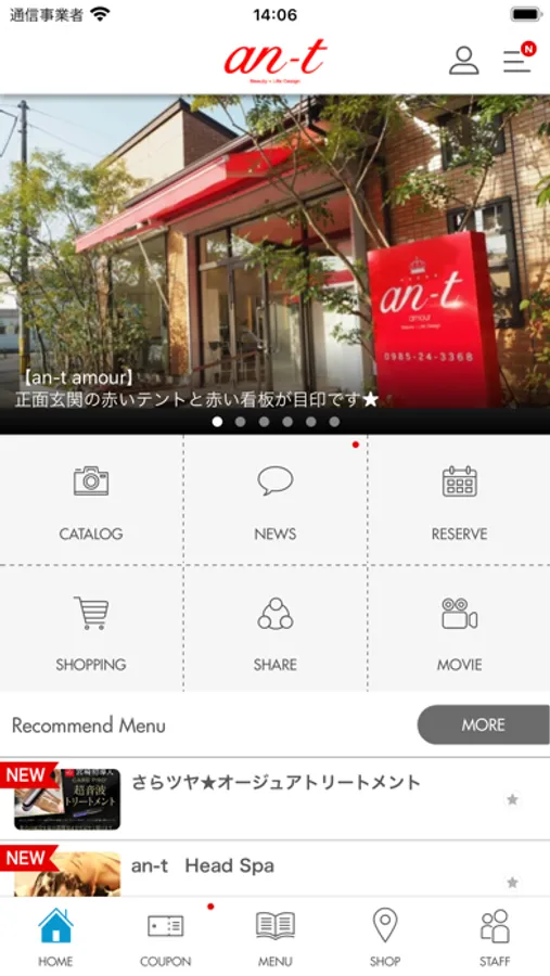 アンティアプリを通してan-tの最新ヘアデザインや旬の美と健康の情報、お得なキャンペーン期間などリアルタイムで受け取ることができます。