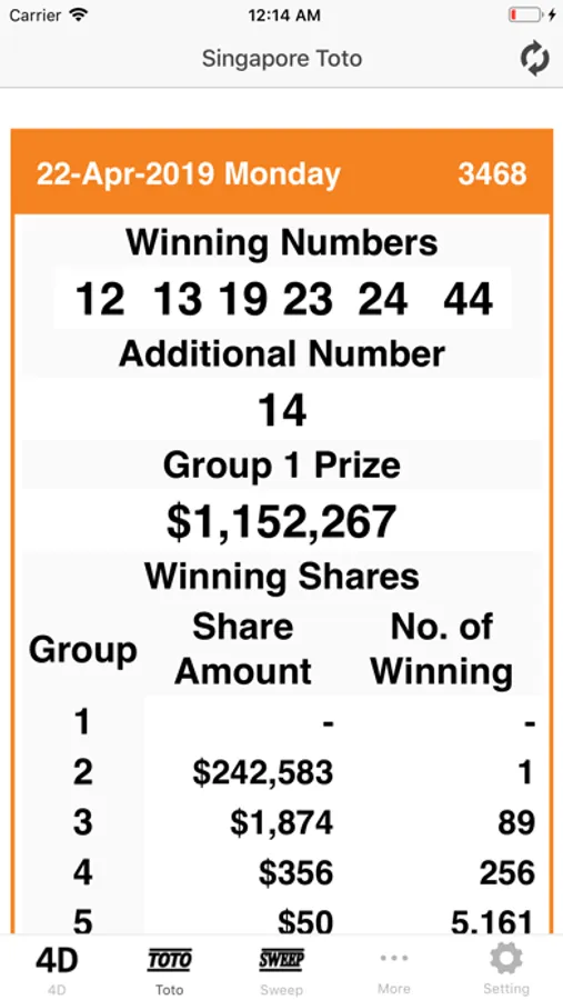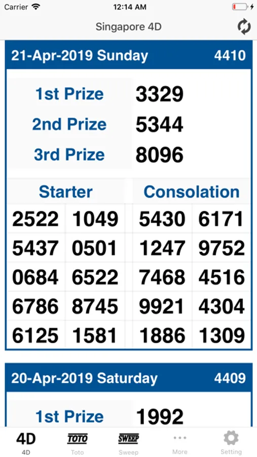 With every effort made to ensure the accuracy of the 4D results published on this App, we do not warrant its accuracy for several reasons including time delays incurred in completing necessary updates.All contents/4D results provided herein is solely for information purposes and is provided on an "As Is" basis only without any warranty or representation of any kind, expressed or implied, as to their accuracy, completeness, timeliness or otherwise. In no event shall the owners of this App have any responsibility or liability for any damage and/or losses incurred (whether arising directly or indirectly) in connection with any accuracy, timeliness, errors, omission and/or information appearing herein and/or on the website.All logos, brands and product names referenced herein are the trademarks or registered trademarks of their respective holders. This App is not affiliated to any of the organisations linked or described. We do not provide, promote or encourage any form of gambling services / activities.This app is developed and provided independent of the involvement of Singapore Pools. To the extent that the reporting of 4D ,Toto & Sweep results may be inaccurate, please note that such inaccuracies are not the responsibility of and should not be attributed to Singapore Pools.