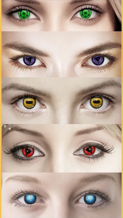Anime Eyes Contact.s Changer For Naruto Shippuden Eyes is the simplest app to apply Sharingan Eyes to your photos. Simply take a photo using the app or import one and choose from a dozen of different Naruto eyes to apply from.
