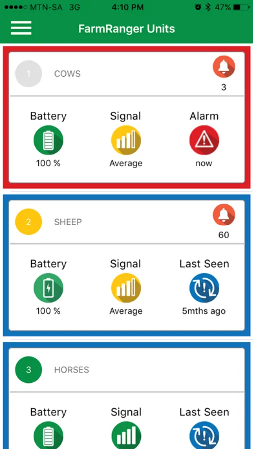 The FarmRanger app works along with FarmRanger Livestock Security Collars to generate alarms on the livestock farmer's mobile phone in the event of theft or predator attacks. The GPS position and movement of the animals are shown on a map, and the farmer can act quickly to prevent damage.