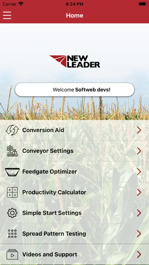 The New Leader Mobile App assist users and dealers in conducting a conveyor or catch calibration and determines calibrated CFR or Constant Numbers. The app also determines initial settings based off of product characteristics. The New Leader Mobile App provides spread pattern testing instructions and pattern evaluations tools.