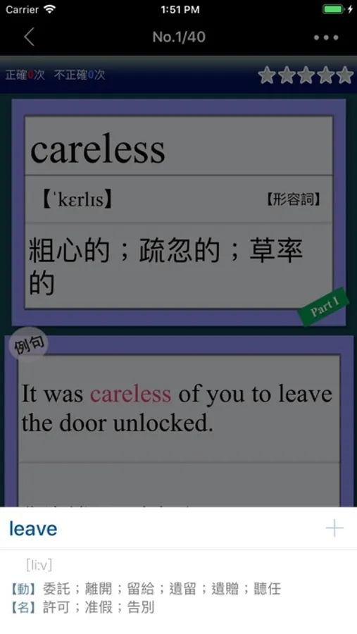 ・您可以對較難記憶的單詞進行收藏,並且可以根據單詞的難易程度選擇收藏的等級。