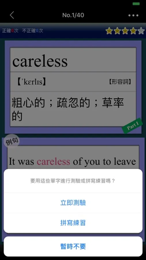 你可以通過測試檢驗自己的學習成果,對於難記的單詞可以反復學習。