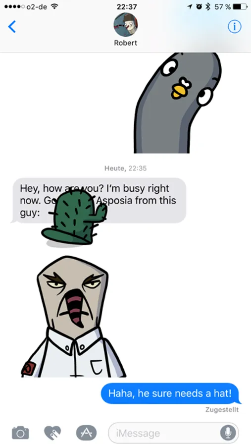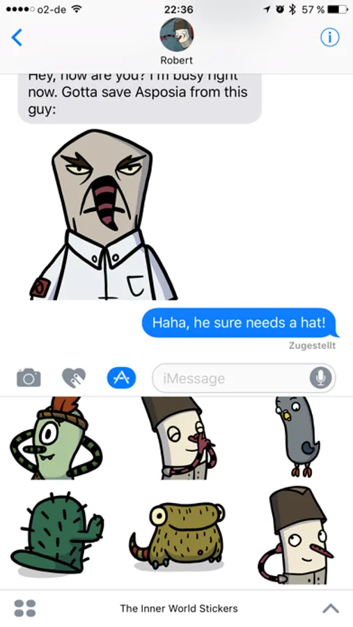 Decorate your messages with stickers of the funny inhabitants of Asposia, including our lovely heroes Robert, Laura and Peck.