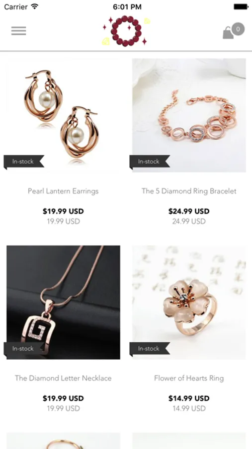 Within our app, you will have access to our entire exclusive collection of earrings, rings, bracelets, necklaces and more! There are hundreds of pieces to choose from in every conceivable style - from victorian pieces to modern and contemporary, you're sure to find something that enhances your ensemble!