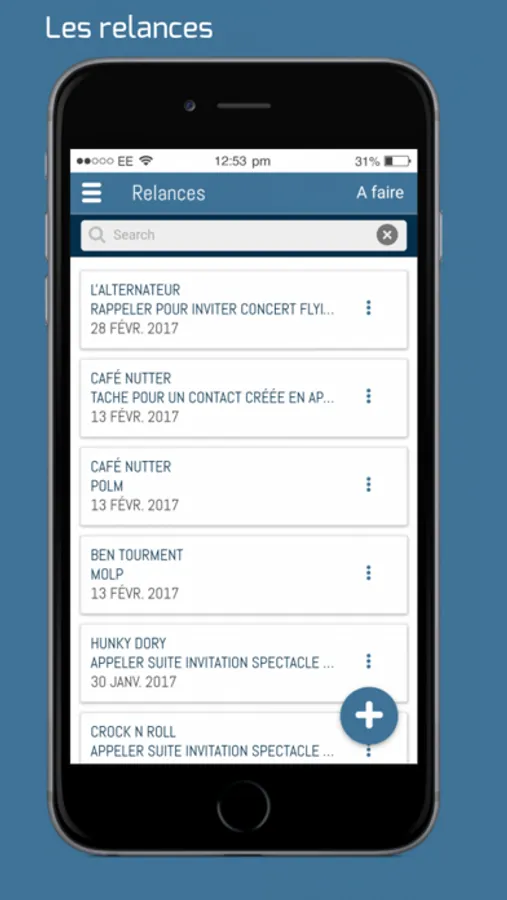 Appli de consultation, elle permet également de renseigner un nouveau contact, poser une date ou inscrire une relance... qui seront immédiatement disponibles pour les collaborateurs restés devant leur ordinateur.