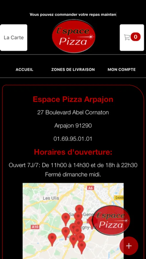 L'application Espace Pizza Arpajon vous permet de commander en ligne ou par téléphone via votre application . Vous pouvez consulter notre carte et choisir vos produits .