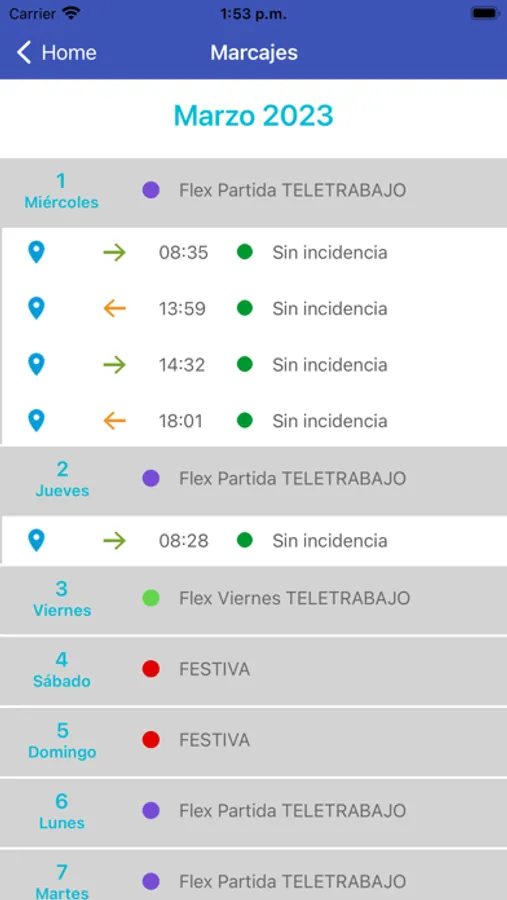 Outside Works permite a los empleados de una empresa fichar con geolocalización desde el móvil. Además permite consultar el histórico de marcajes realizados por el empleado, sus vacaciones pendientes y los valores de contadores del control horario