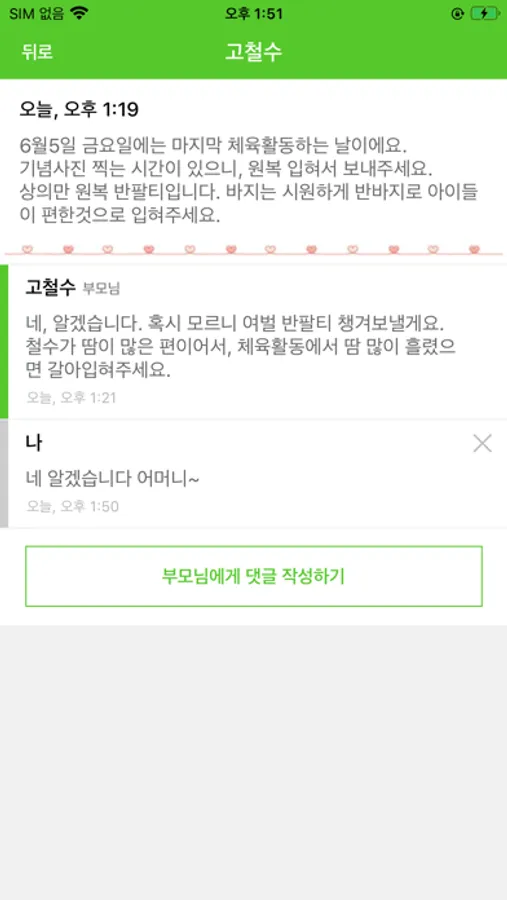 각 담임 선생님의 반 관리 아이디와 비밀번호는