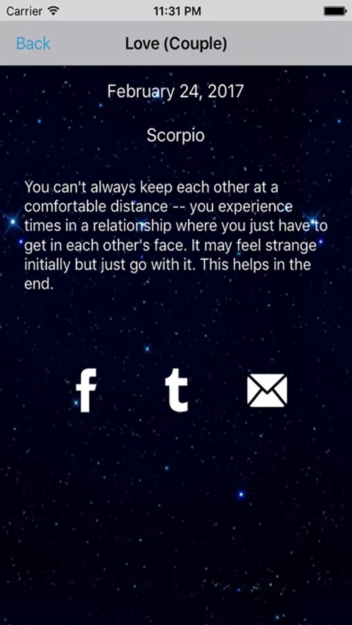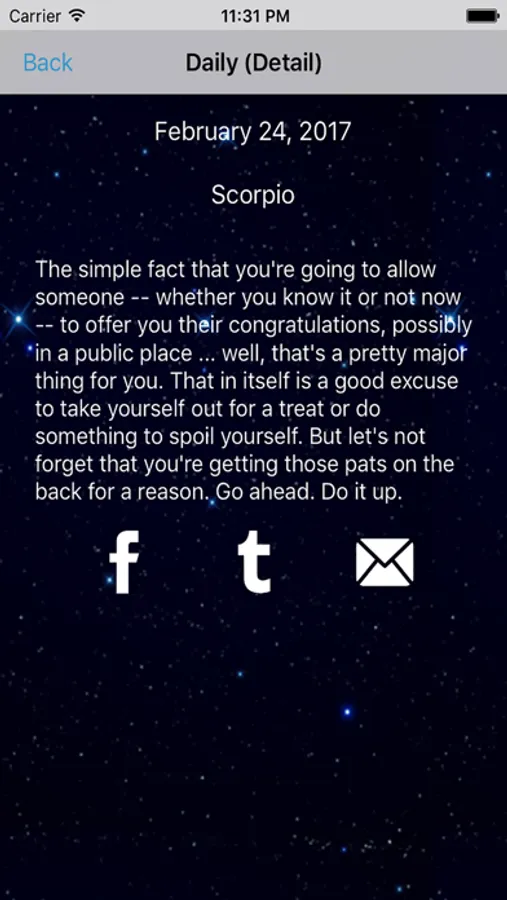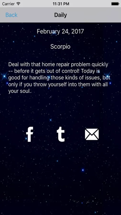 - Share with your friends your horoscope prediction to Facebook, Twitter, and more!