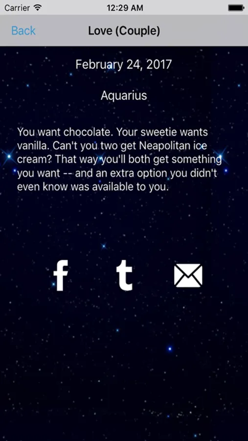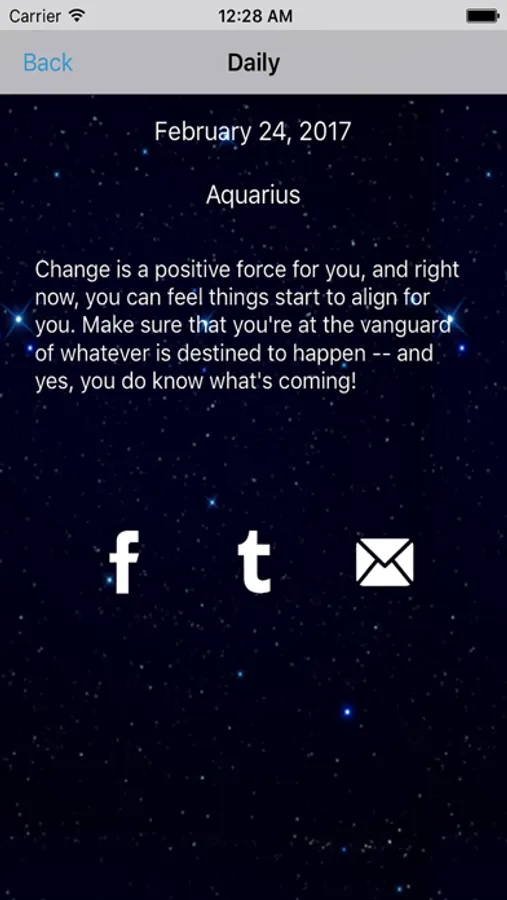 - Share with your friends your horoscope prediction to Facebook, Twitter, and more!