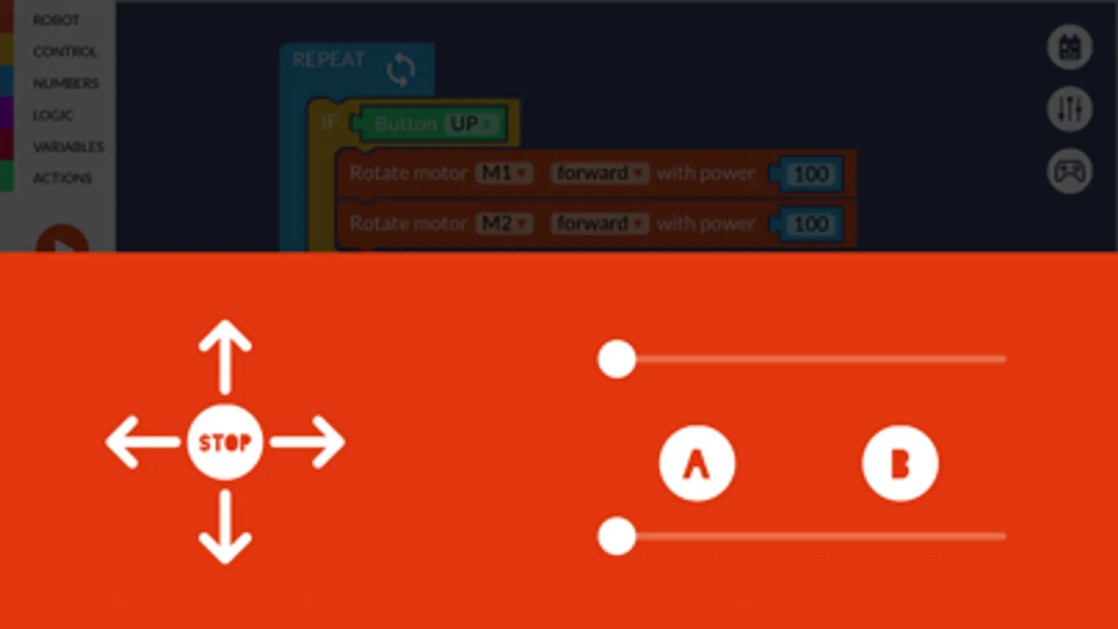 - use built-in gamepad controller to play with your robot in real time