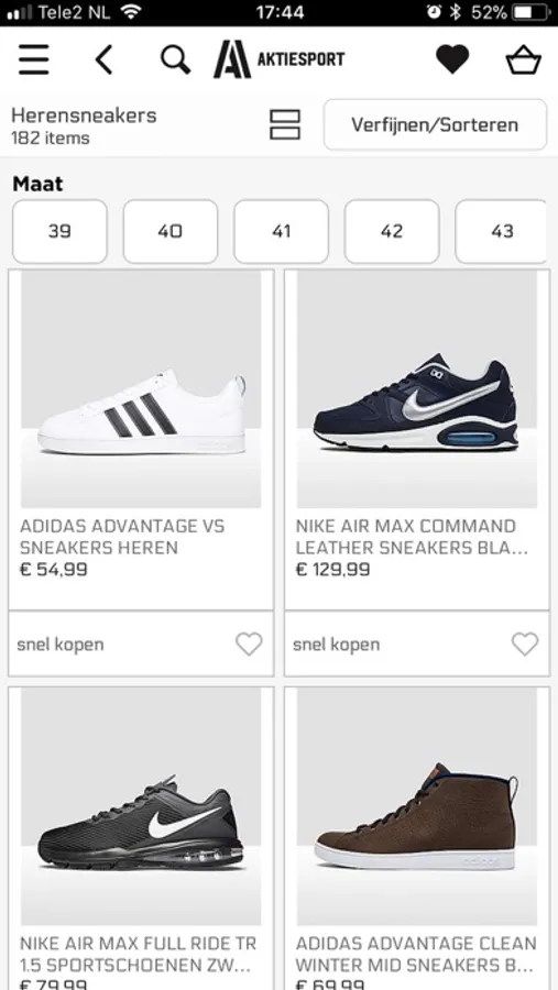 Met de app shop je binnen een handomdraai je favoriete items. De selectie aan sneakers, kleding en accessoires stem je met het uitgebreide filtermenu helemaal af op jouw wensen. Ook bekijk je onze footwear in 360 graden.