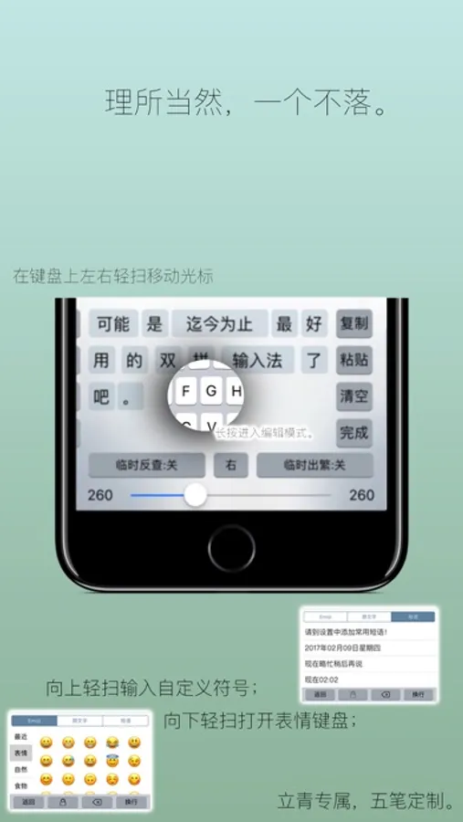 第一次,落格五笔在 iOS 平台实现了真正的自定义任意码表输入!得益于立青全人工【逐字整理,精确到每一个词条的权重排序】的五笔码表,在 iOS 上用五笔打字,就!是!爽!