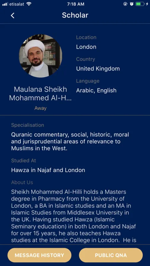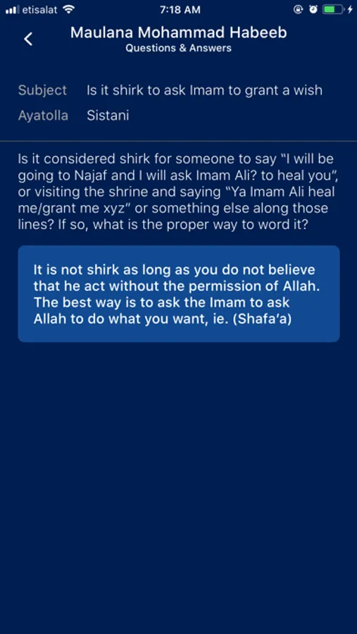 The aim of the app is for the user to send questions to the scholars while maintaining their privacy. These scholars belong to the school of Ahlulbayt(a.s.)