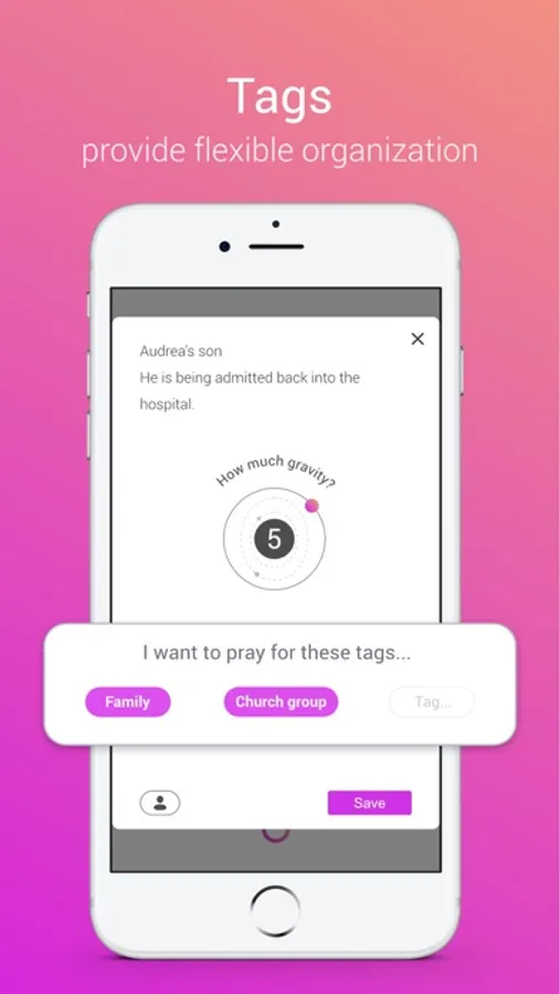 To help you manage your prayer requests and PrayLists™, you can create up to 3 tags for each prayer and list. The more creatively you use your tags, the more focused and effective your prayer sessions become.