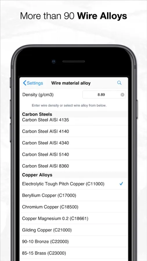 • Convert: Quickly convert wire sizes between inches, millimeters and AWG. Also quickly convert tensile strengths and temperatures.