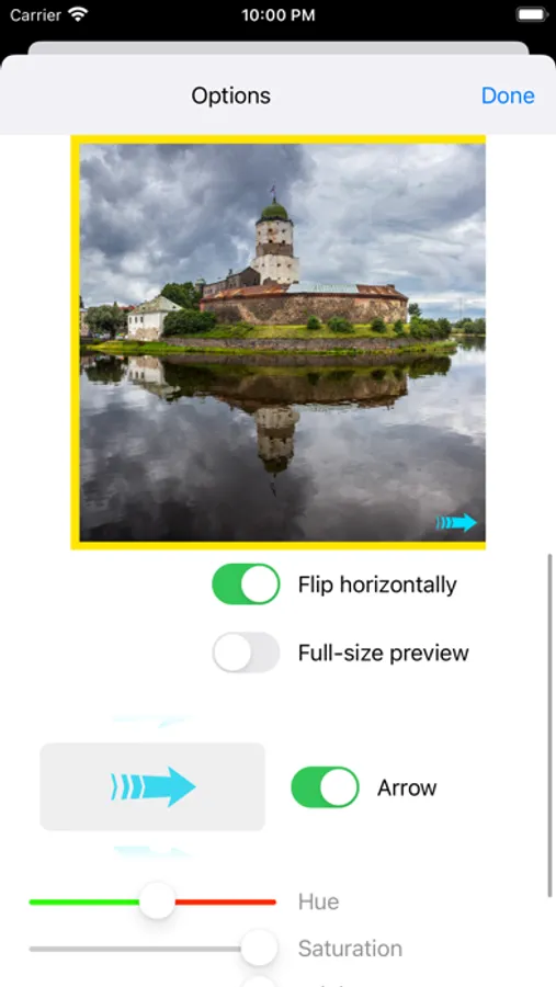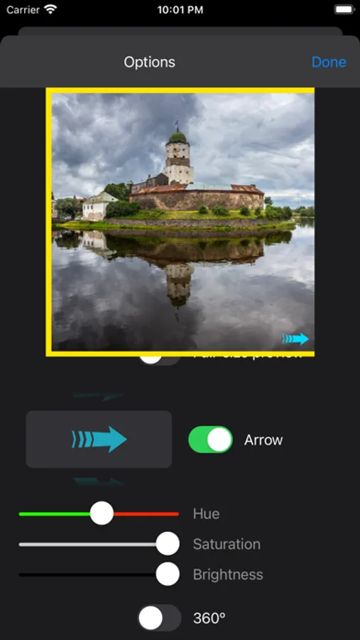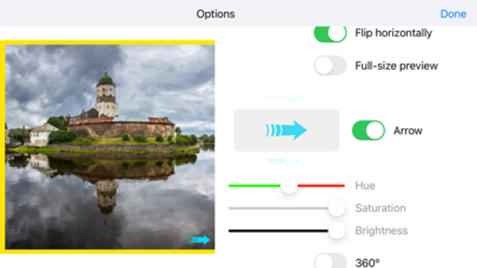 • add small arrow to the first image to pay additional attention of viewer about other parts of panorama on the right. Choose style, color size and position,
