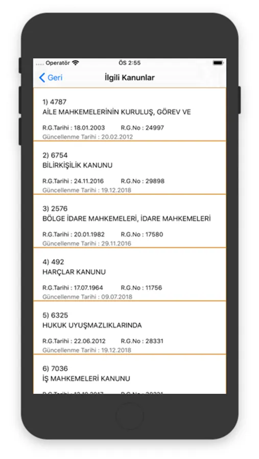 Aşağıdaki kanunlar Uygulamada yer almaktadır.