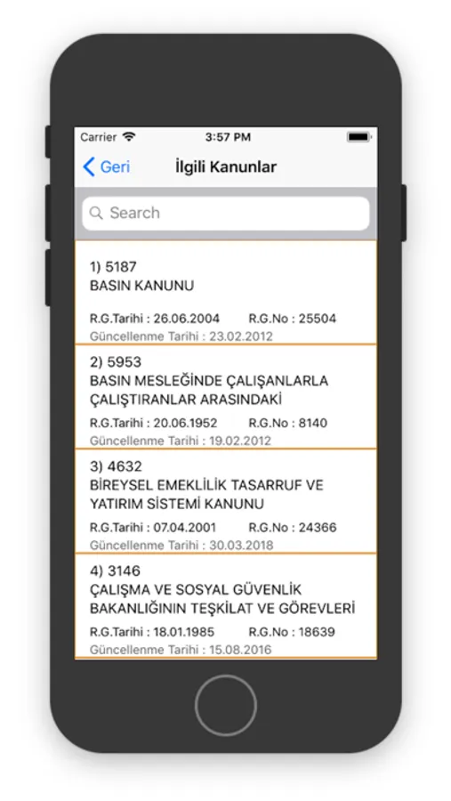 Aşağıdaki kanunlar Uygulamada yer almaktadır.