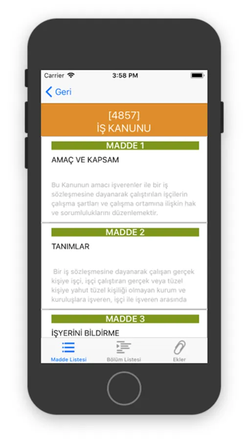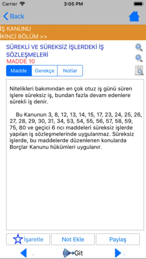 1-Yıldız işaretine basarak Kanun maddesini işaretleyip İşaretlediklerim menüsünden hızlıca ulaşabilirsiniz.