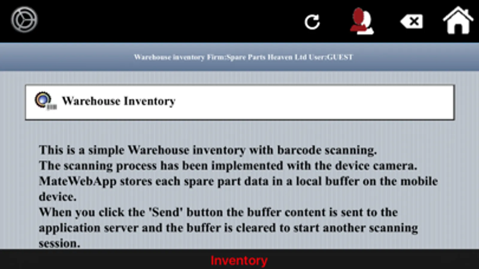 At first install a demo website address is already set: the demo implements a simple warehouse inventory with spare part barcode scanning.