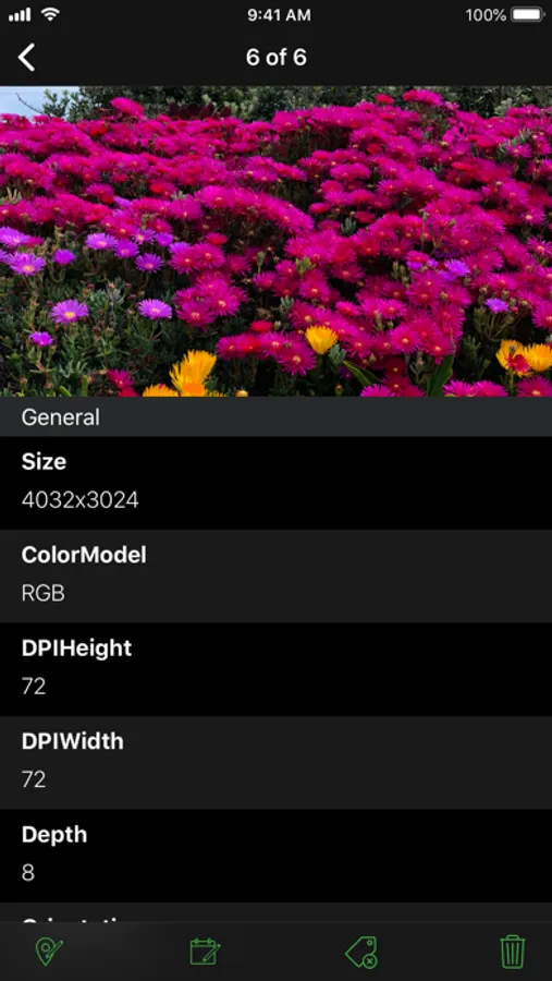 - Displays all available EXIF metadata: file size, time, location, camera, ISO, etc.