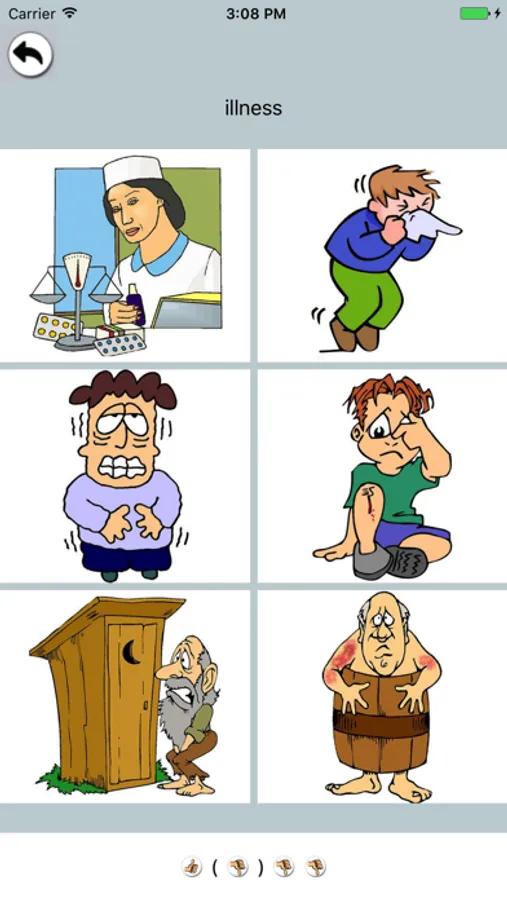 If you know the word, "thumb up" the card by pressing on the hand. Otherwise the card will stay in the "thumb down" category.