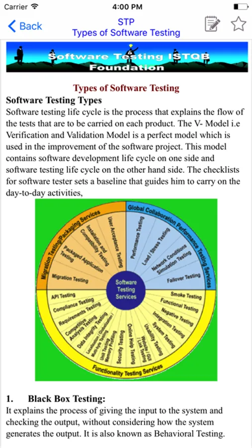 1. This application contains all the concepts of Software Testing with pictorial explanations of many concepts.