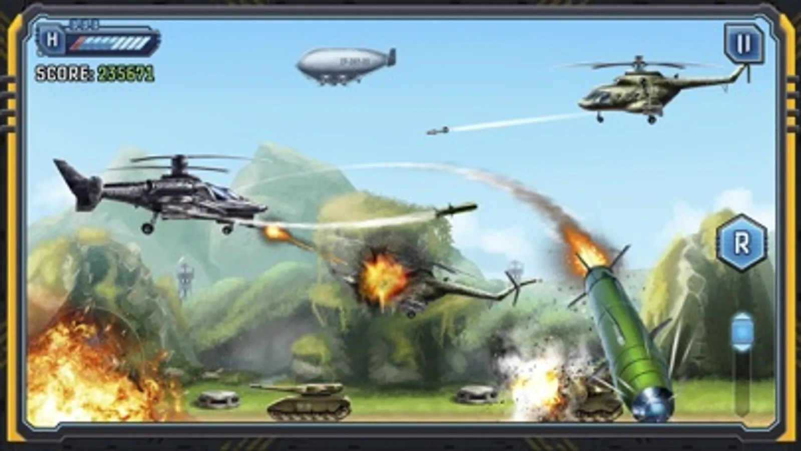 Control your helicopter, shoot enemies from the machine gun, destroy enemy armies by accurate shots of homing missiles, ground-based bombs! Earn points, and exchange for the most advanced weapons to attack even more effectively. Your task is to dodge the hail of bullets and shells, protect our army and your helicopter.