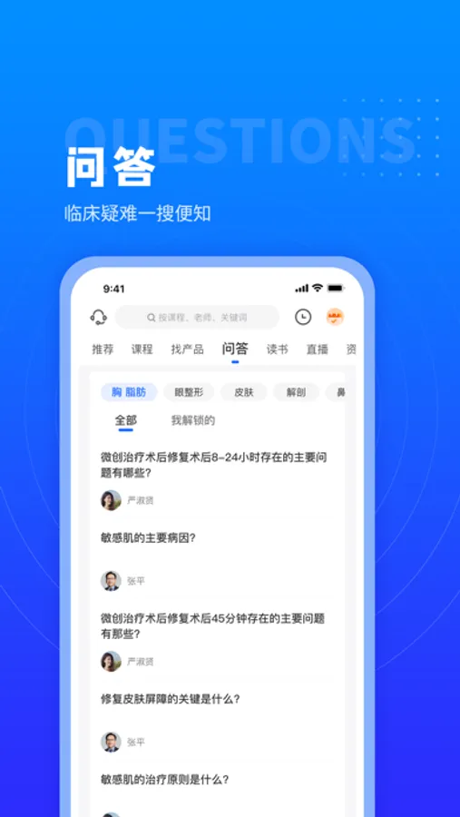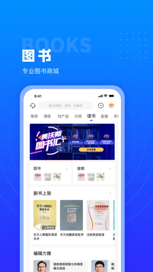 美沃斯APP致力于为广大医美从业者提供优质的医美知识内容。涵盖视频课程、问答专区、产品查询、线上直播、社区交流、医学文献、医美图书、行业热点资讯等板块,为医美从业者打造系统的知识服务与信息共享平台。