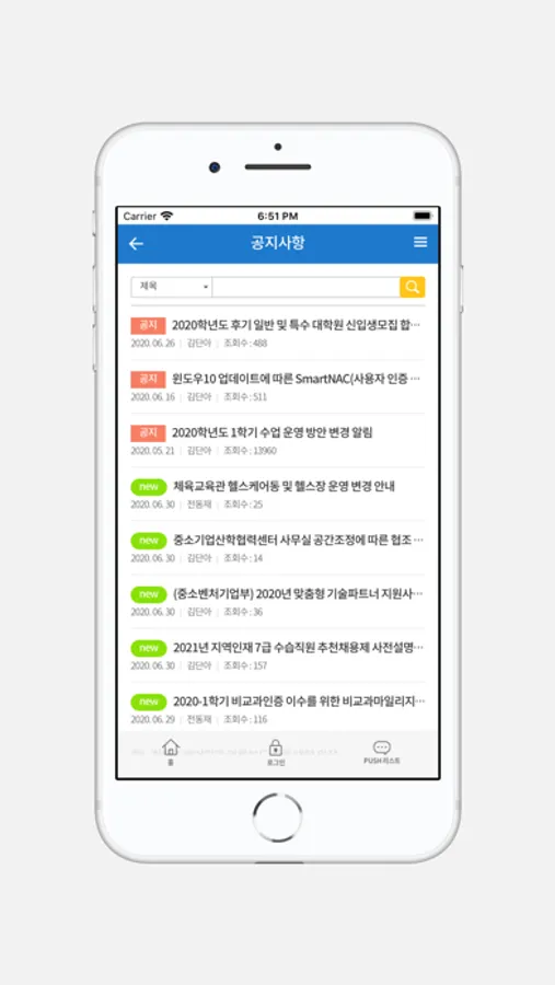 - 학생생활관 : 공지사항, 선발자조회, 박신청 등