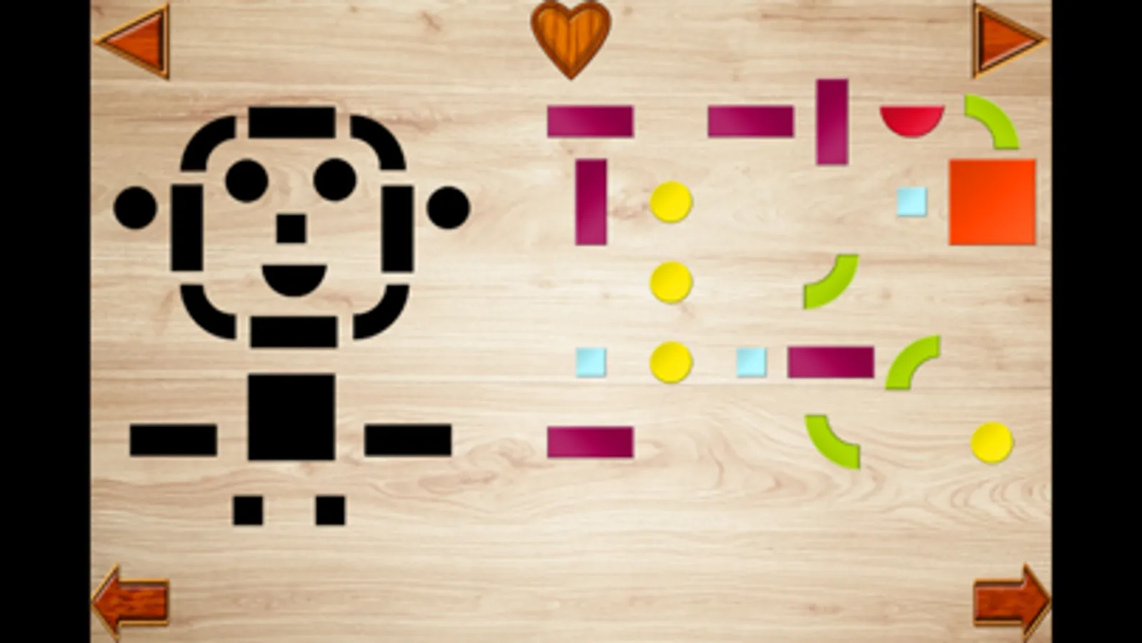 There are 26 excellent Jigsaws of various shapes and colors in this app.The app teaches to distinguish shapes, sizes and colors.Simple and intuitive control will make the first encounter with various colors and shapes easy and cheerful.