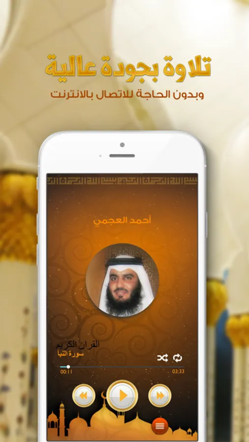 يحوي هذا التطبيق على صوت جميل من القارئ أحمد العجمي