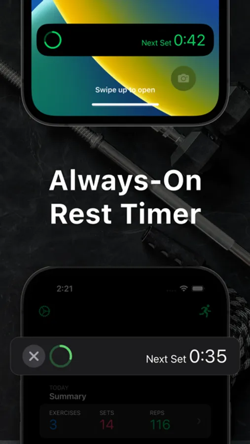 Rather than using a separate app as a rest timer, Setgraph automatically lets you know when it's time for your next set based on your preference.