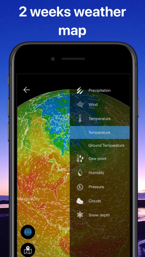 - Globe (14 days forecast): You can check the wind animation and various weather layers with the 3D earth.