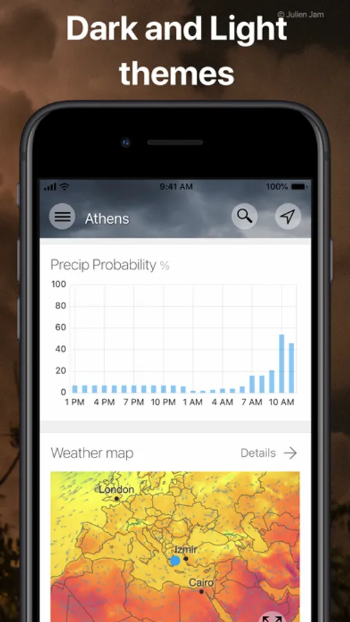 - Map (Radar & 1 day forecast): You can check the real rainfall radar with the Apple Map.