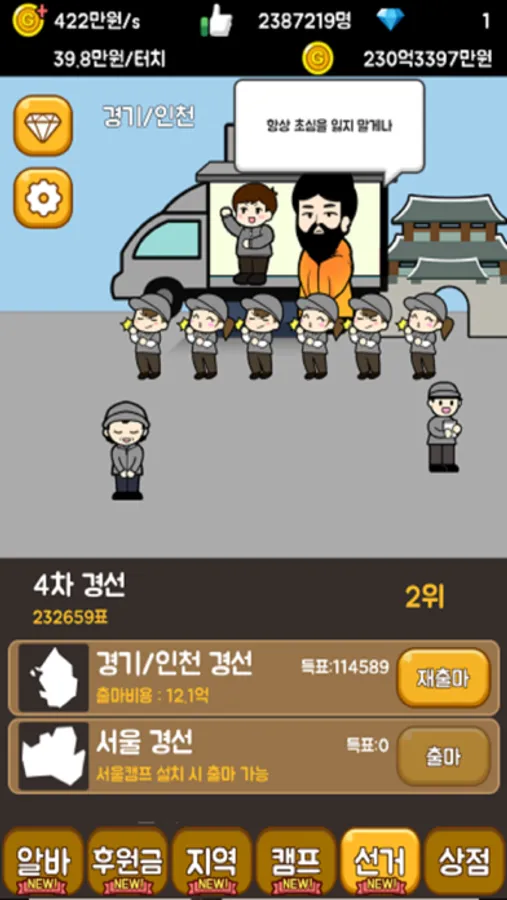 전편 대통령 키우기에 이은 후속작 선거 노가다 게임