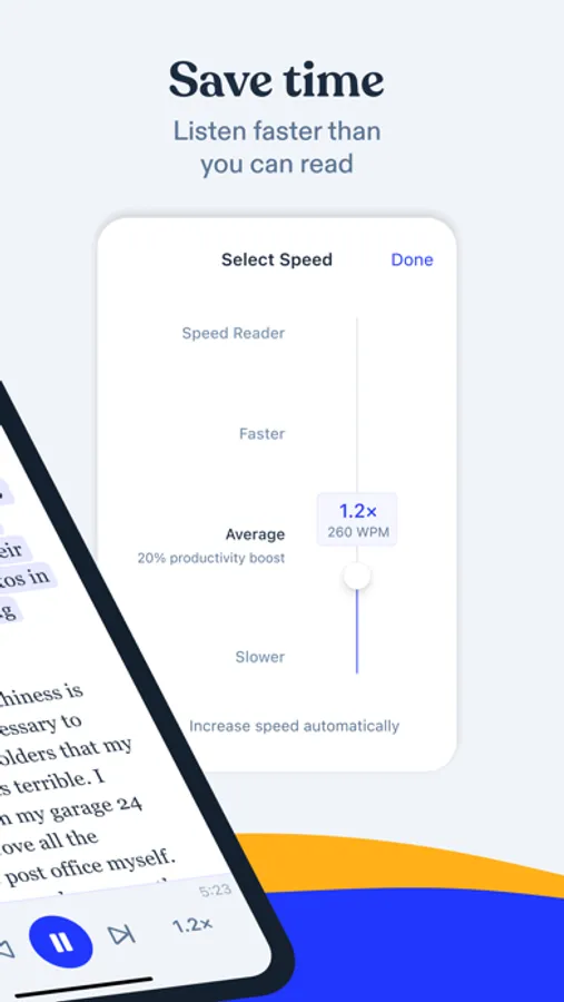 Our high-quality AI voices can read 4.5x faster than the average reading speed, so you can learn even more in less time. Ease into 300 words per minute & slowly increase the speed to as fast as you need it to be.