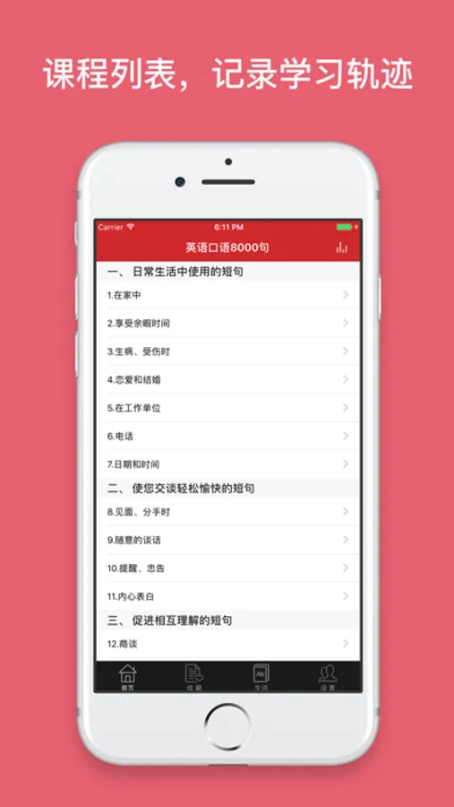 《英语口语8000句完美版》提供了进度管理, 时间管理, 每本书, 每个课程, 每个生词都有学习进度, 学习时间, 精确掌控学习进度.