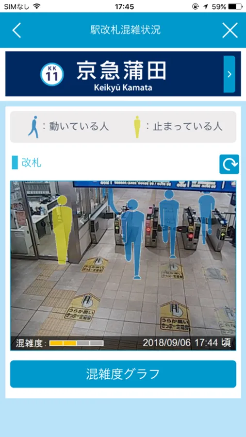 駅視-visionが導入されている駅について,駅改札付近の混雑状況をカメラ画像・混雑度・混雑度グラフでご確認いただけます。