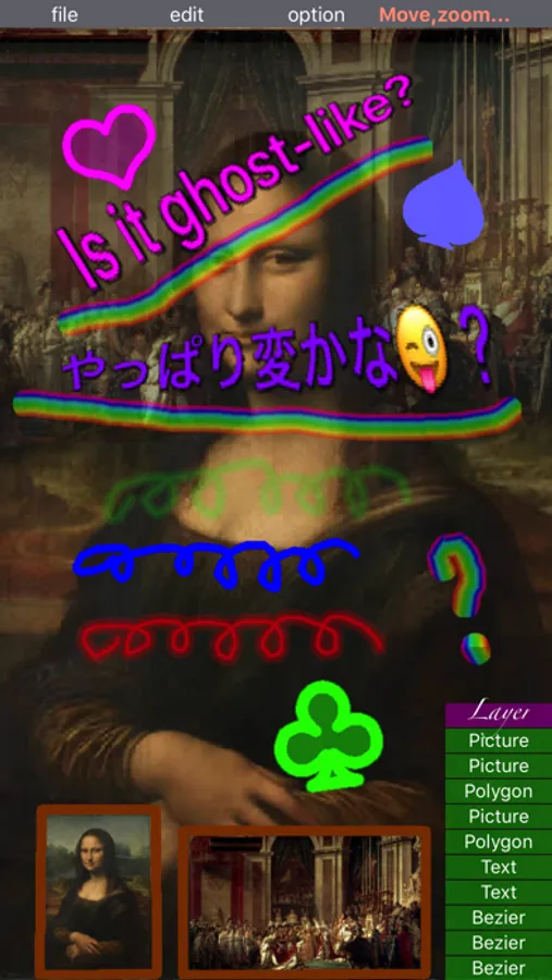 Background penetration, a stamp, a layout, drawing, synthesis and character input etc. are the application everything can be set.