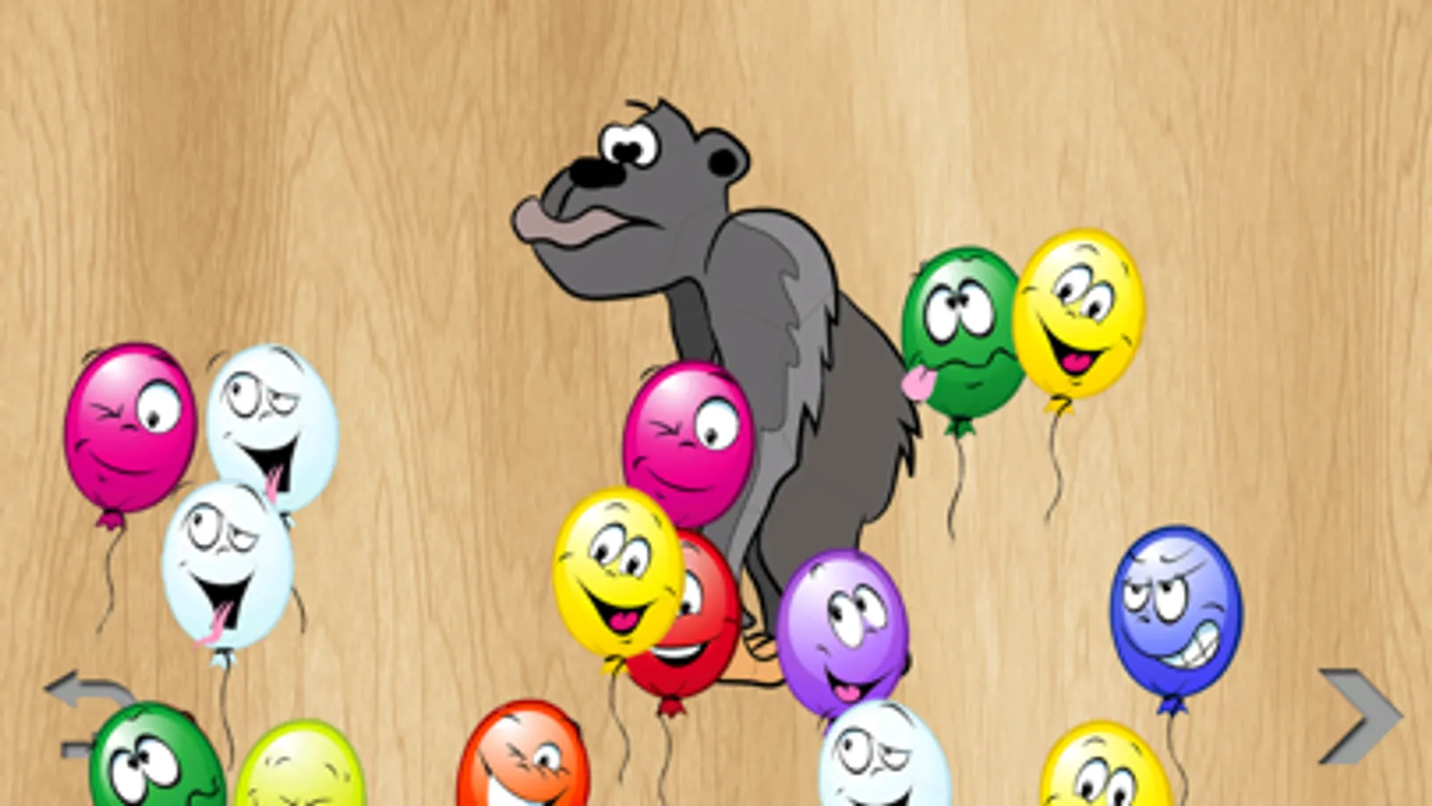 * Появление анимации с воздушными шариками и веселых приветствий после каждого правильно собранного пазла