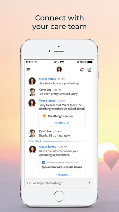 - Exchange private messages with your behavioral health care team. Your provider will be there to support you and keep you up to date with important information for your care.