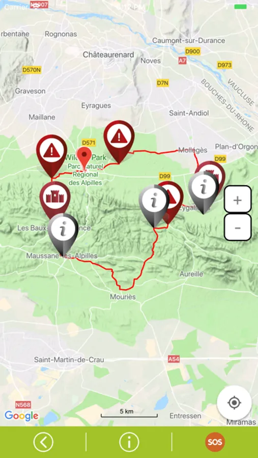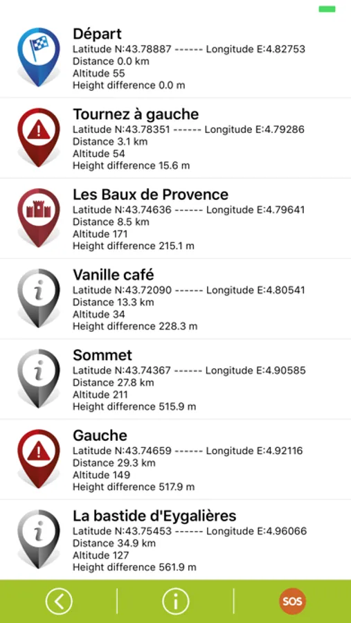 Les points d'intérêt sont classés par catégories : Info, Route, Patrimoine ou Etape, ils sont agrémentés d'une description, d'une photo et le cas échéant d'informations supplémentaires sous forme de PDF, vidéo ou fichier sonore.