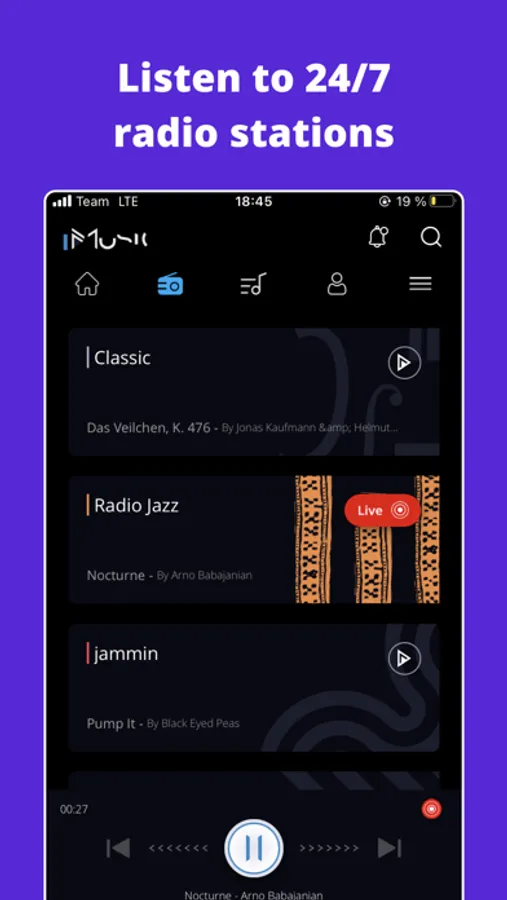 Discover the variety of radio channels 24/7 with IMUSIC. Choose one of the stations and explore the world of music by mood.