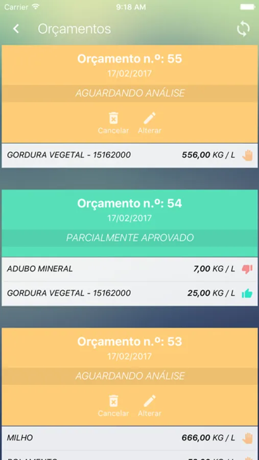 Aplicativo de orçamentos dos cooperados da Coacen.