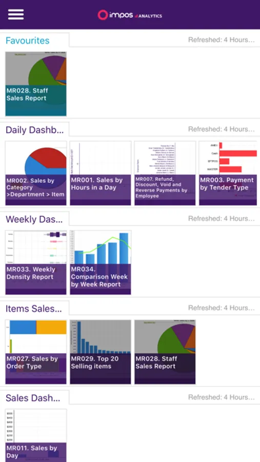 To view reports on your smartphone just download the Impos Analytics app, login, and access your Dashboard.